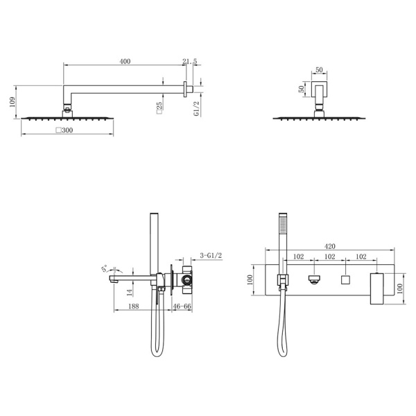 Душевой комплект 3в1 Boheme Qubic 474-MG золото матовое