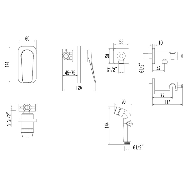 Гигиенический душ Swedbe Calypso 5022B черный матовый
