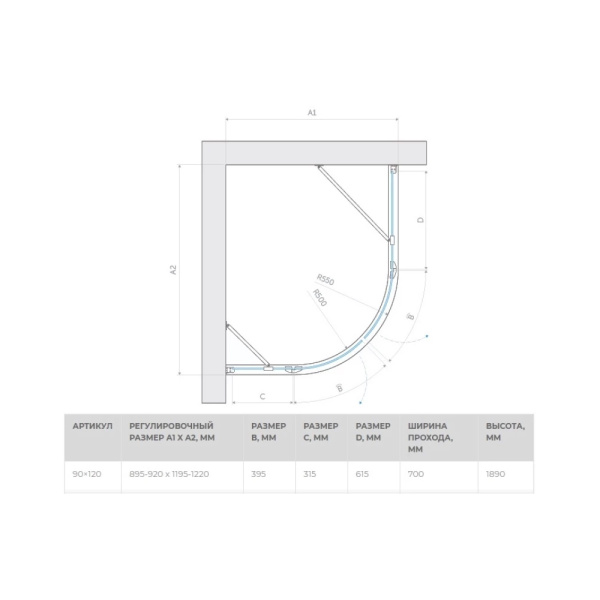Эти ограждения подойдут для более просторных помещений. Распашные двери обеспечивают удобный доступ и могут открываться как внутрь, так и наружу, что позволяет выбирать оптимальный вариант установки. - Полукруглые и радиальные ограждения