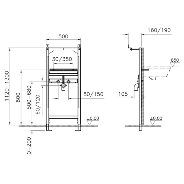 1. Стандартные инсталляции для подвесных раковин