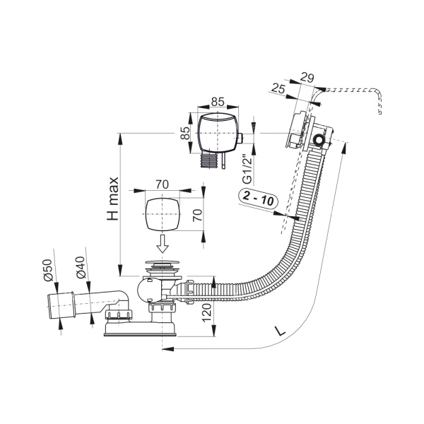 - Управление осуществляется с помощью троса или поворотного механизма, который открывает и закрывает слив.