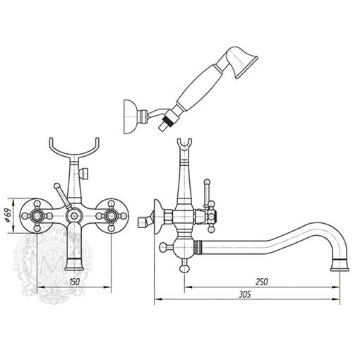 Комплект Д/с ЗОЛОТО см-ль д/ван + колонна Г-обр + верх душ MIGLIORE