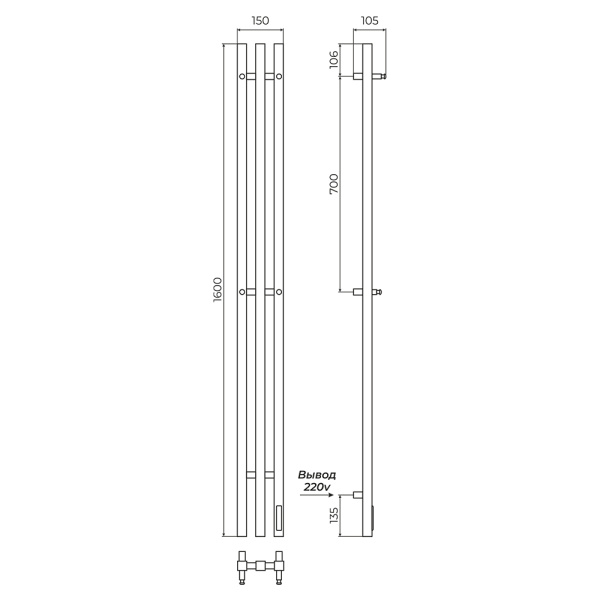 Полотенцесушитель электрический Point Фрея PN20732B П2 21x120 черный матовый