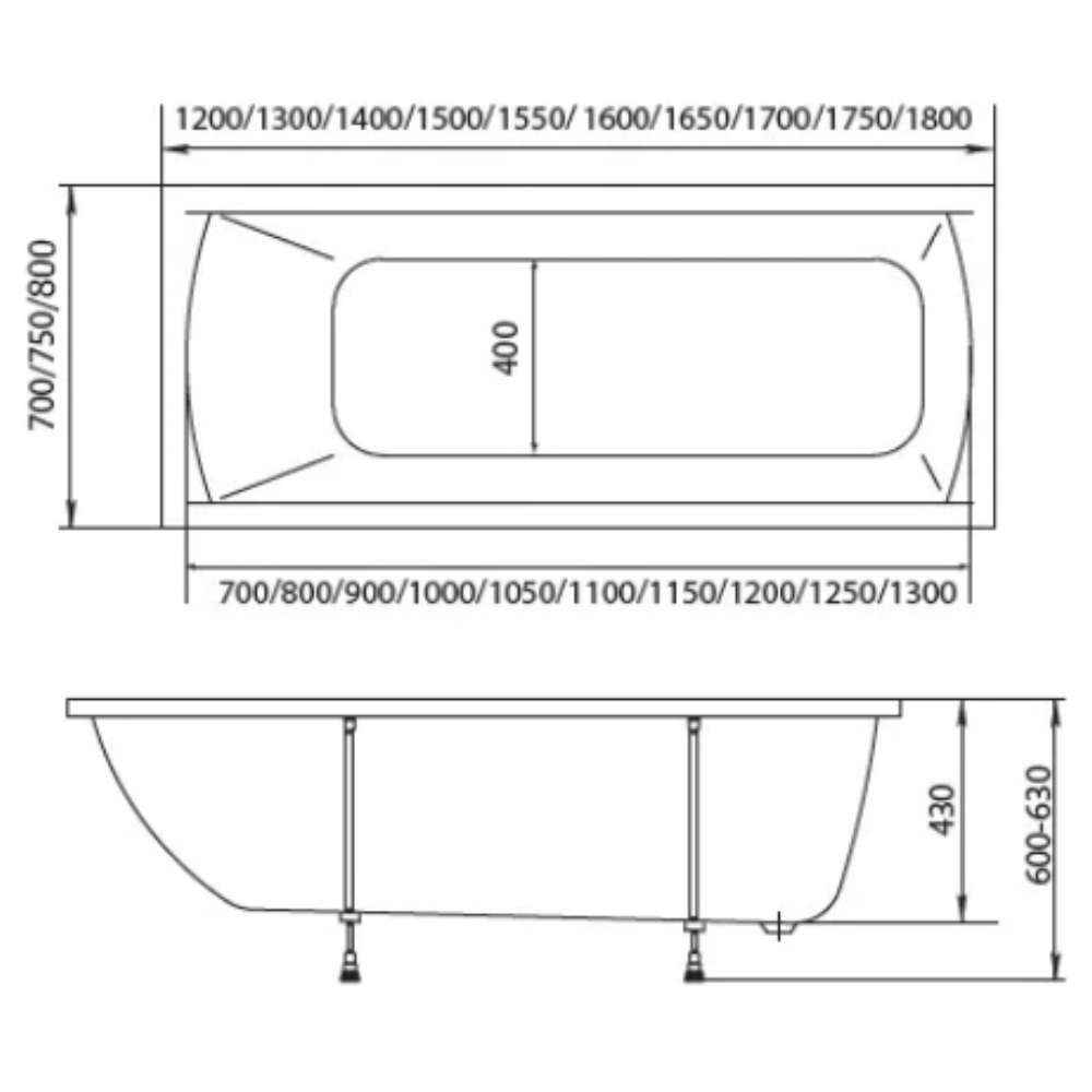 Акриловая ванна AVS Модена 180x75 белая, без каркаса