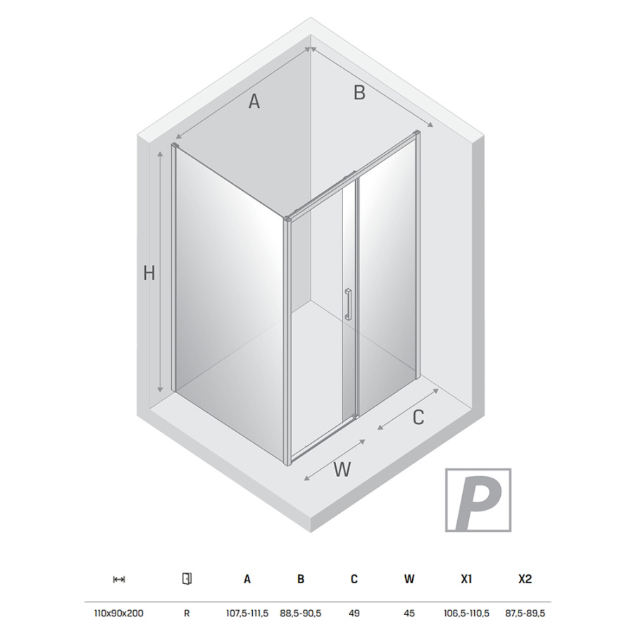 Душевой уголок New Trendy Prime Black 110х90 R профиль черный матовый, стекло прозрачное
