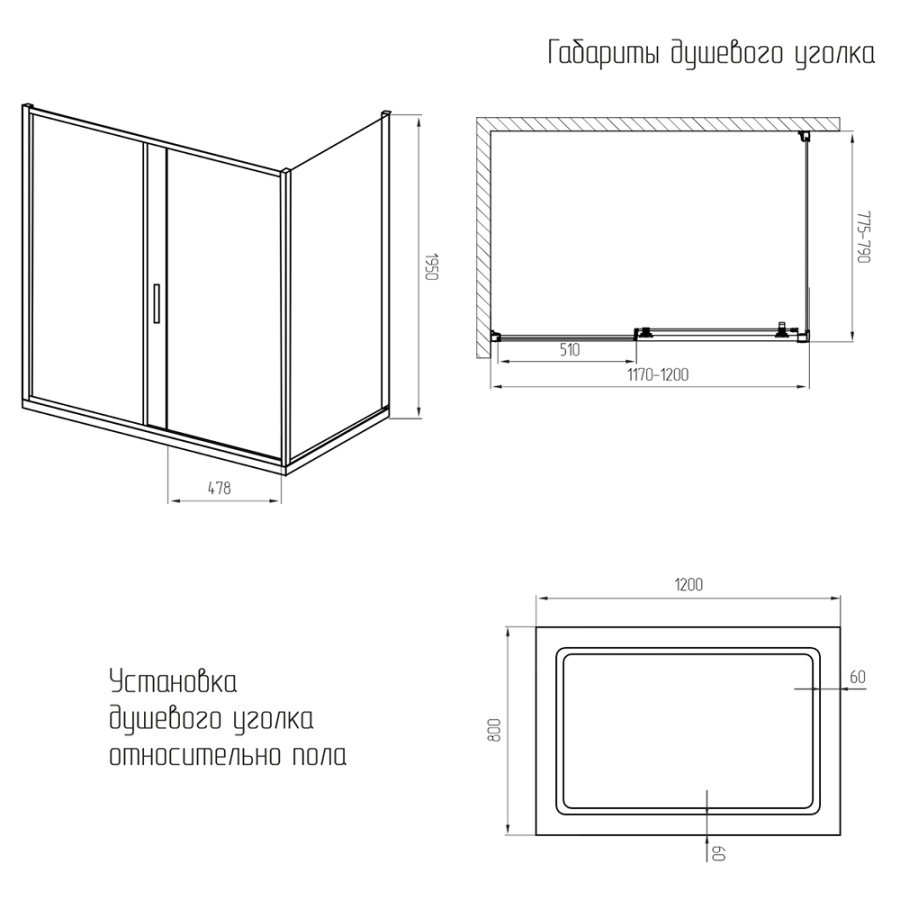 Душевой уголок AVS Квант Квадро 120x80 профиль хром, стекло прозрачное