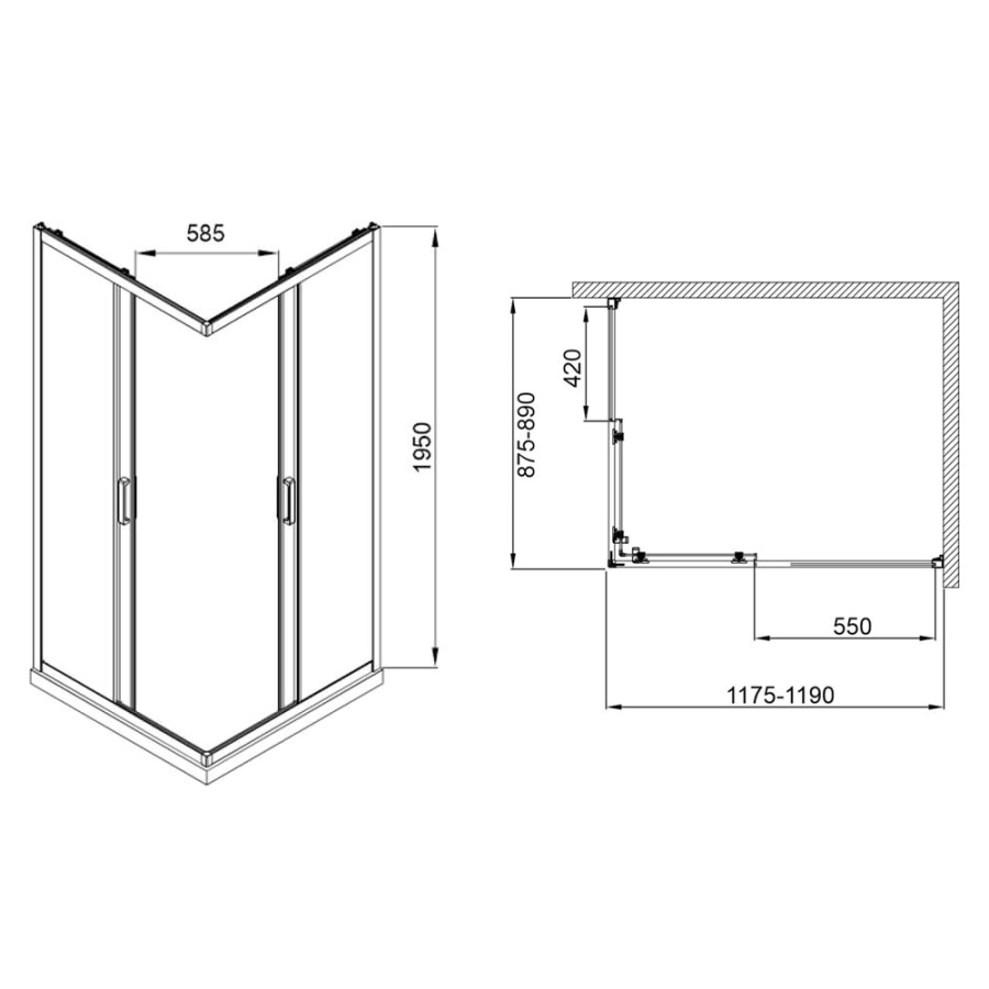 Душевой уголок AVS Куб 120x90 пофиль хром, стекло прозрачное