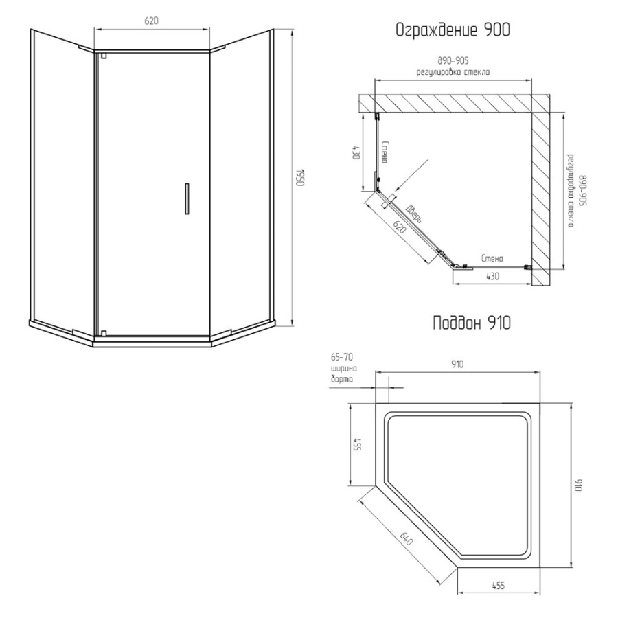 Душевой уголок AVS Трапеция Слим 90x90 профиль золото, стекло прозрачное