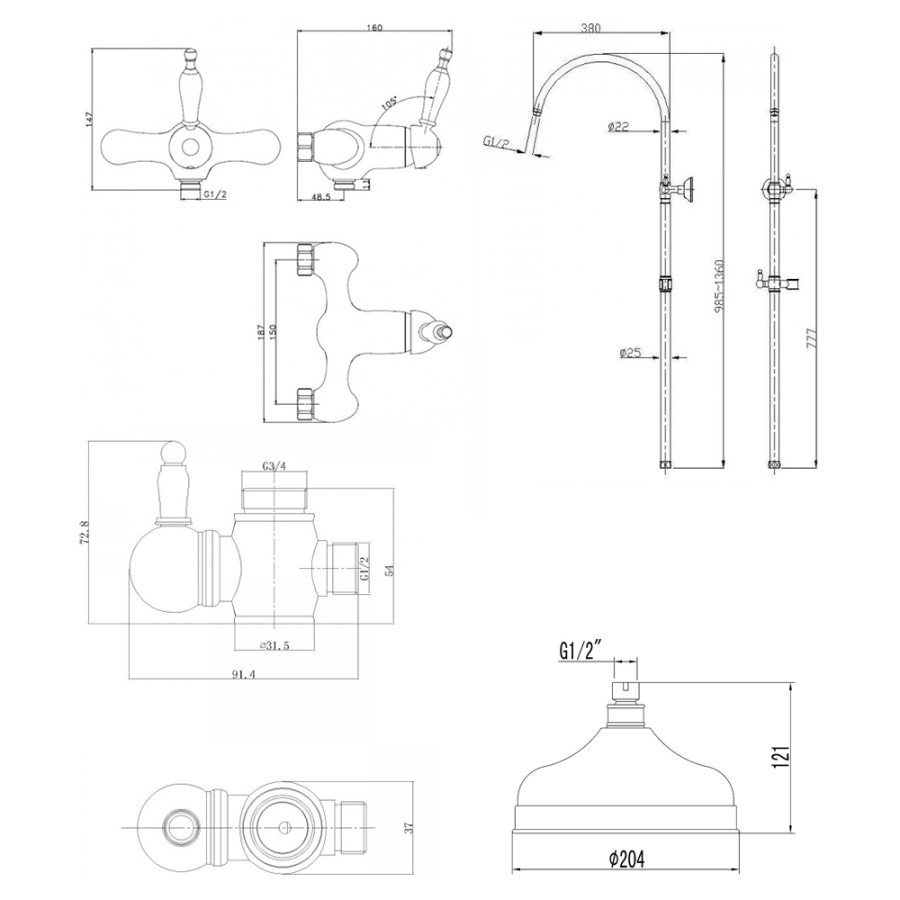 Душевая стойка Aksy Bagno Faenza 410+2005+2003+LM8989C+1001+1000 хром