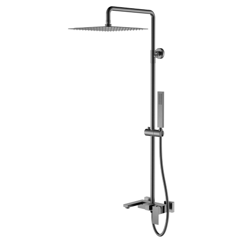 душевая стойка; комплект эксцентриков; смеситель; верхний душ; душевой шланг; ручной душ; инструкция.