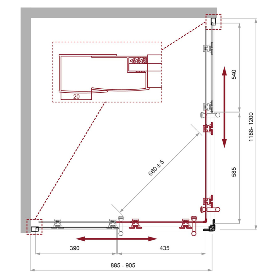Регулируемая ширина 20 мм, Регулируемая глубина 12 мм