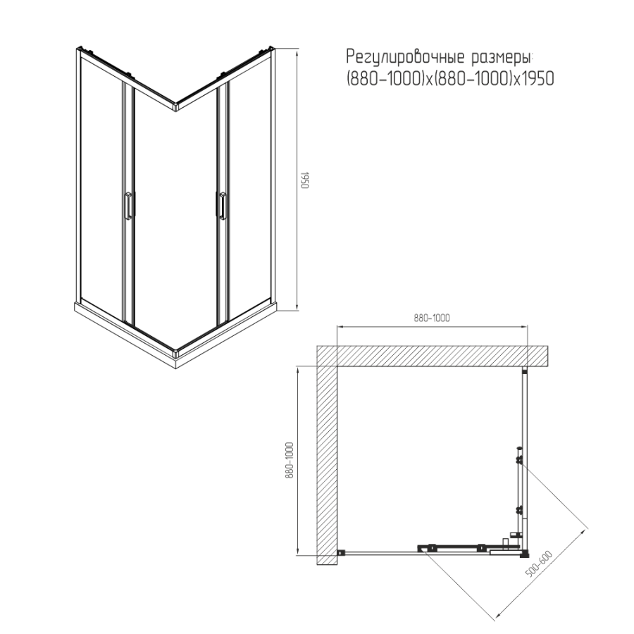 Душевой уголок AVS Слайдер Куб 90-100x90-100 профиль черный матовый, стекло прозрачное