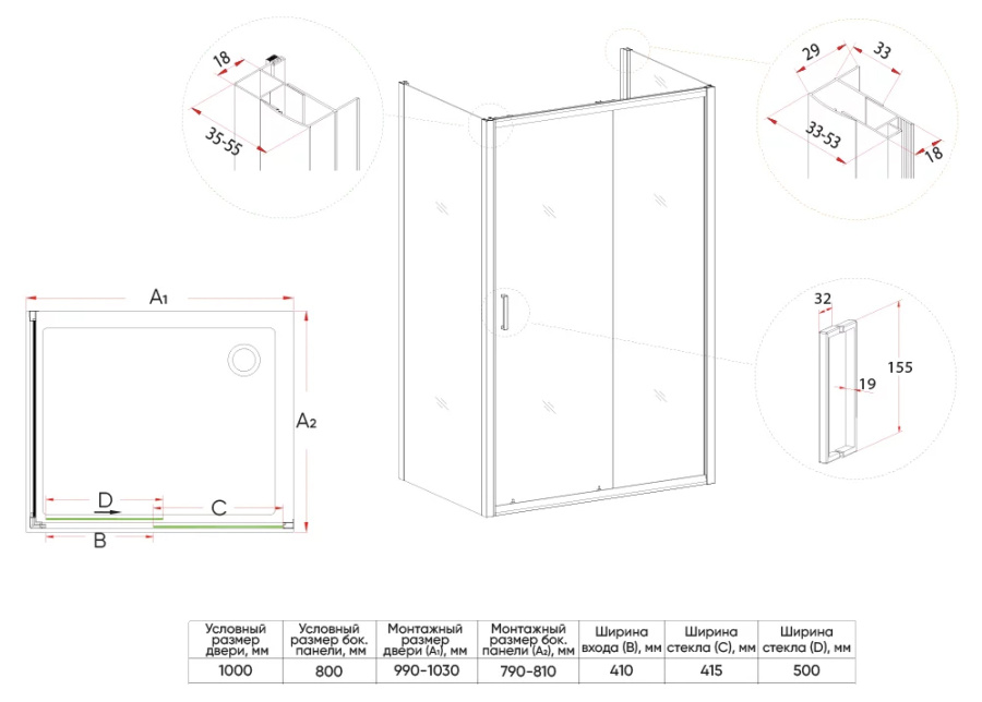 Душевой уголок Veconi Rovigo RV-046 100x80 профиль хром, стекло прозрачное