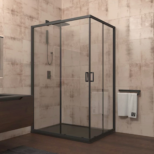 Душевой уголок Veconi Rovigo RV-14 100х90 профиль черный матовый, стекло прозрачное