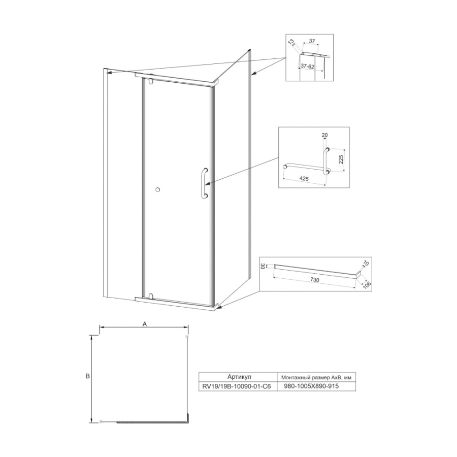 Душевой уголок Veconi Rovigo RV-19 100х90 профиль хром, стекло прозрачное