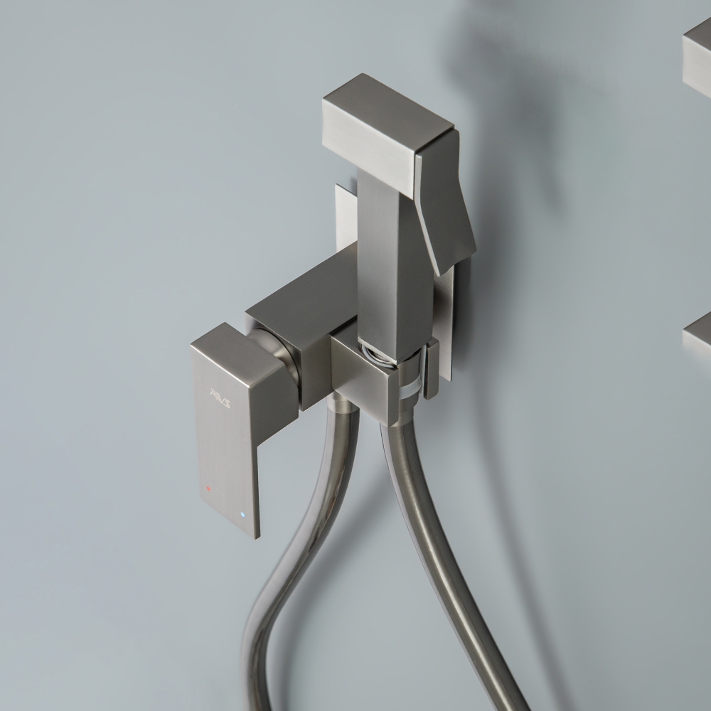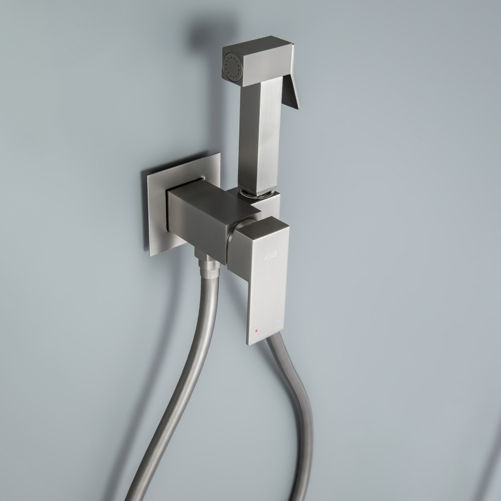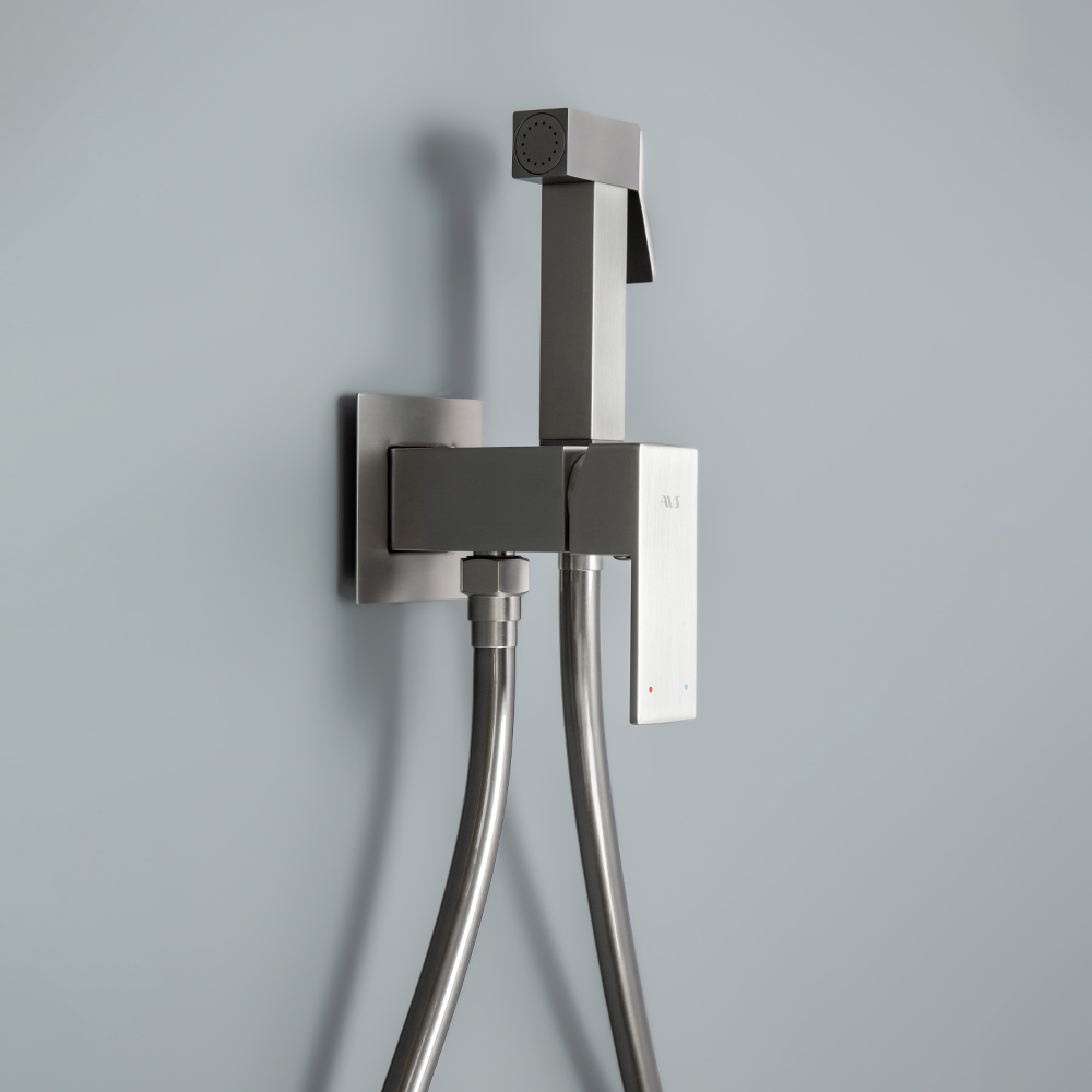 Гигиенический душ со смесителем AVS Cube оружейная сталь