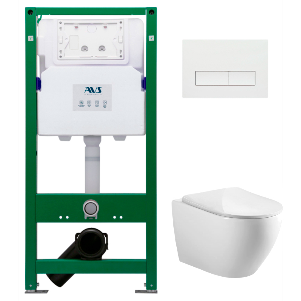 Комплект 3в1: Инсталляция д/унитаза с отв.для дез.таблеток 809-0006-7732C + клавиша Белая прямоугольная 809-0011-GW+ 809-0102-P-T2-GW унитаз Сатурн AVS