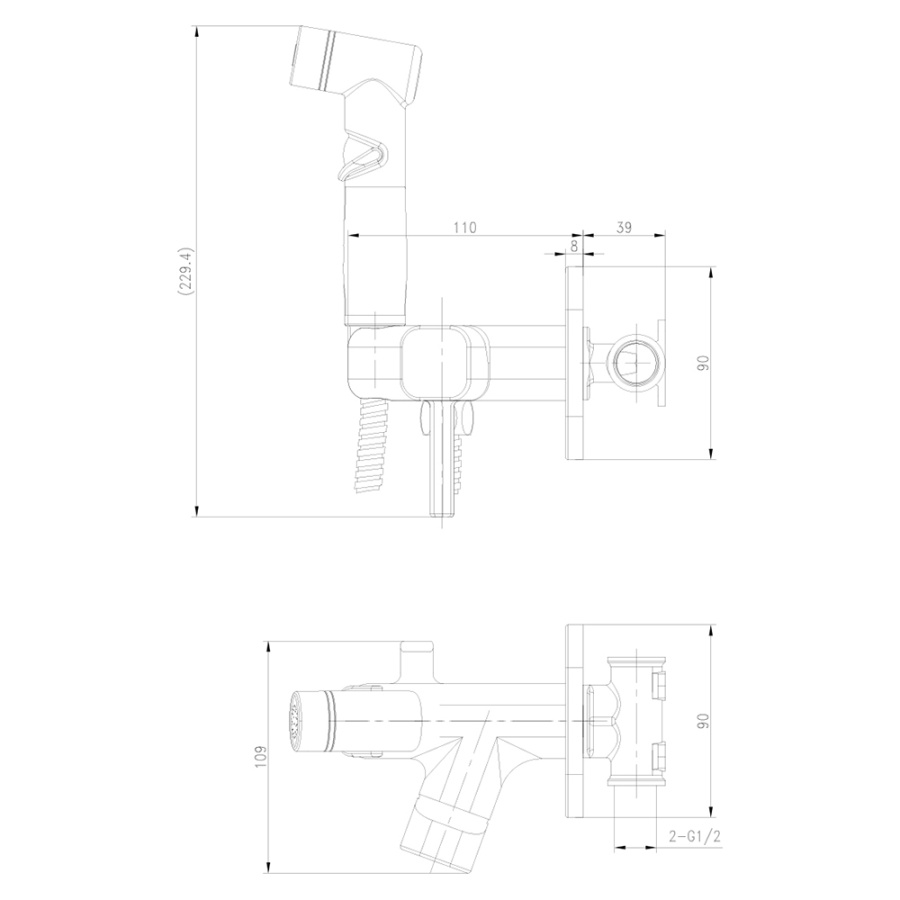 Смеситель;скрытая монтажная часть; Гигиеническая лейка; Шланг