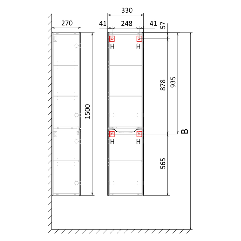 Пенал 330*1500*270 подвес ПВХ Белый Statik RAVAL