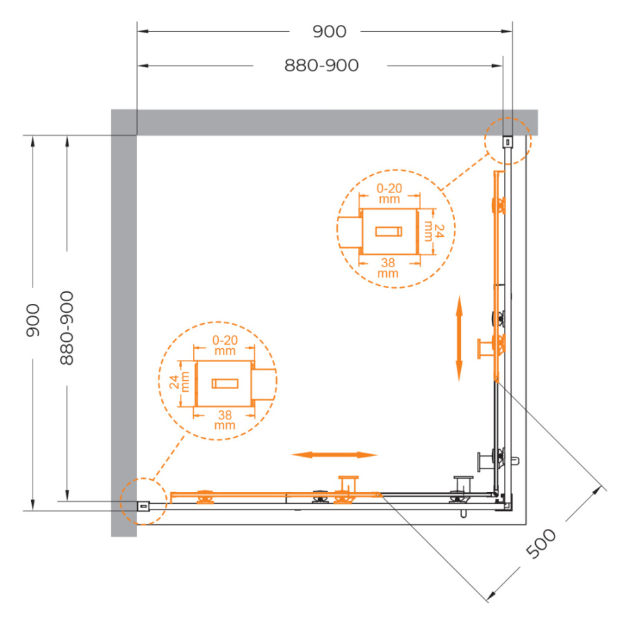 Душевой уголок Cezares Relax RELAX-304-A-2-90-C-GM 90х90 профиль оружейная сталь, стекло прозрачное