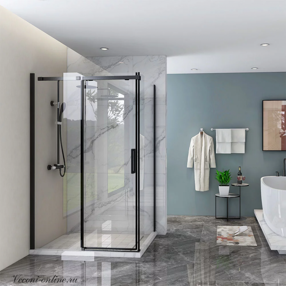 Душевой уголок Veconi Rovigo RV070 120х90 профиль черный матовый, стекло прозрачное