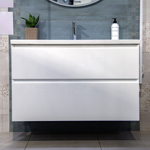 Тумба с раковиной AVS Гармония 100 белая (раковина 01 белая глянцевая)