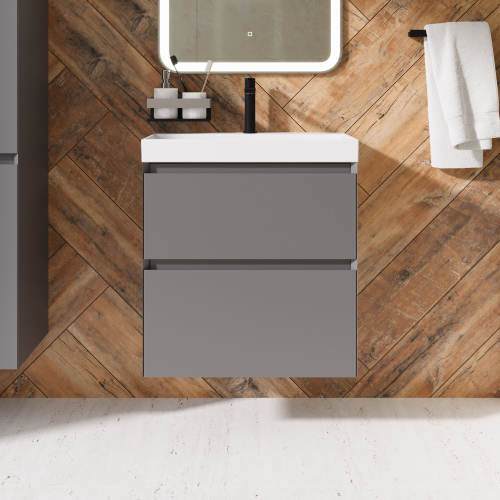 Тумба с раковиной AVS Гармония 60 платина матовая (раковина 02 белая глянцевая)