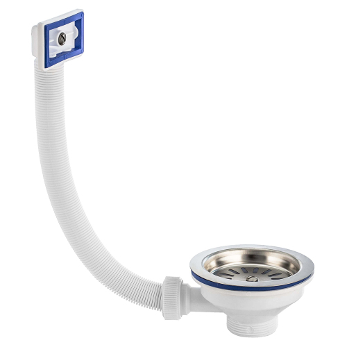 Выпуск для мойки с плоской нержавеющей чашкой 114 мм и прямоугольным переливом Элит Virplast