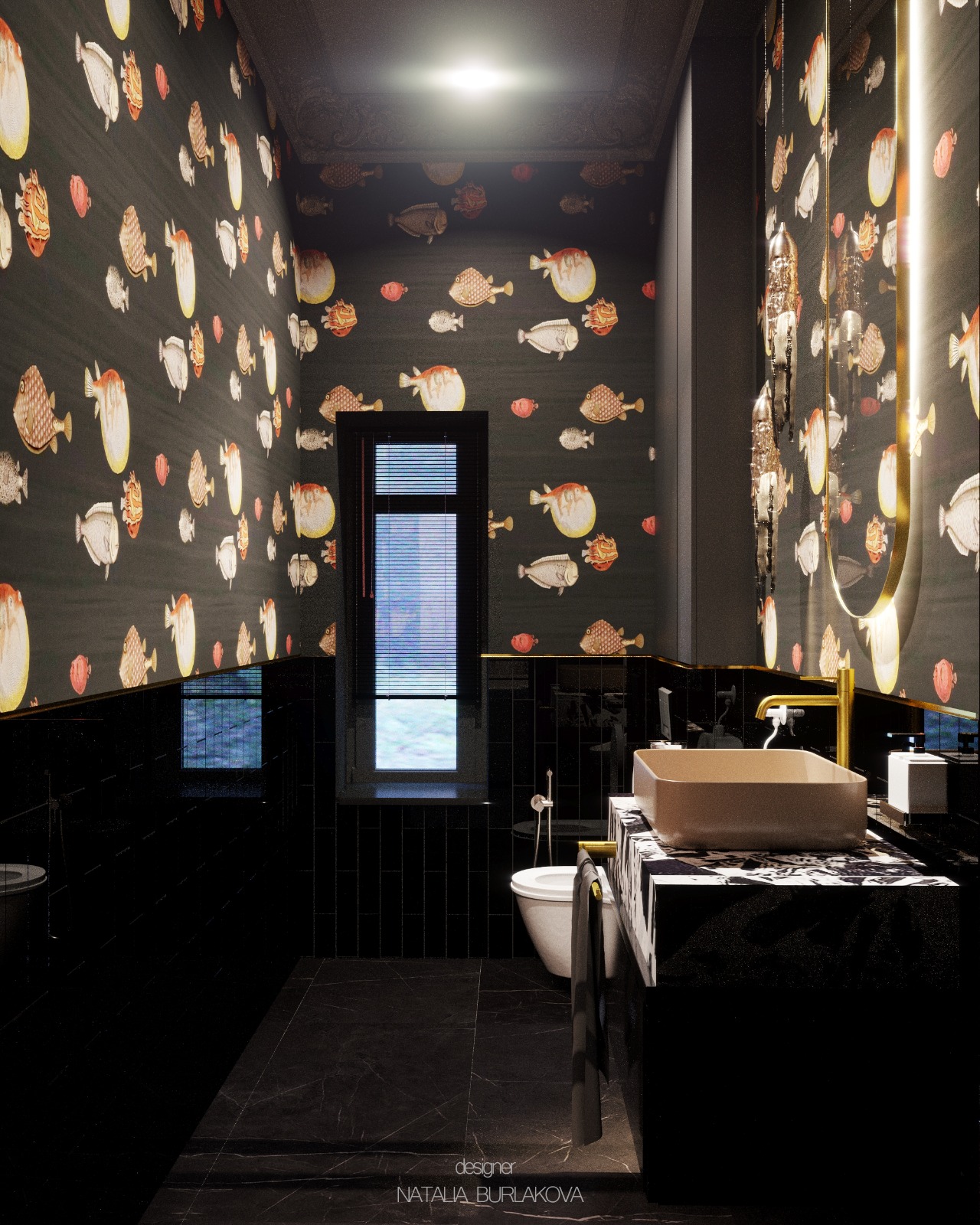 Хозяйка дома харизматиная личность, сан.узел получился под стать - такой же яркий и смелый. Интерьер - это индивидуальная история, важно, чтобы он отражал и продолжал настроение его обитателей.