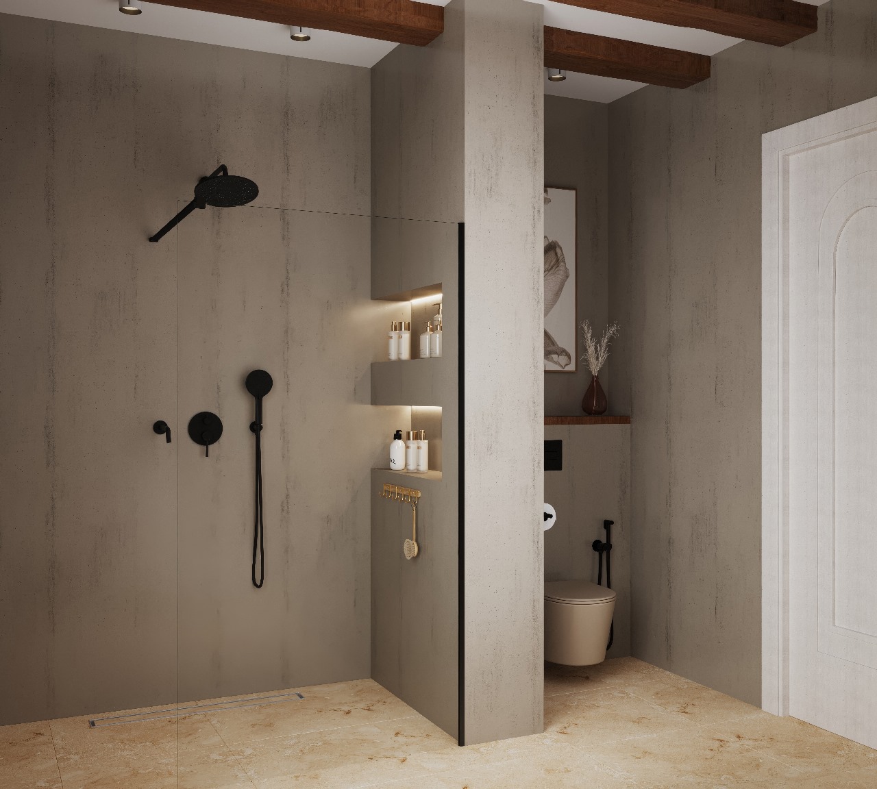 Представляю вам новую работу – ванную комнату, где царит гармония и умиротворение, вдохновленные самой природой, где каждый элемент пропитан теплом и естественностью!
