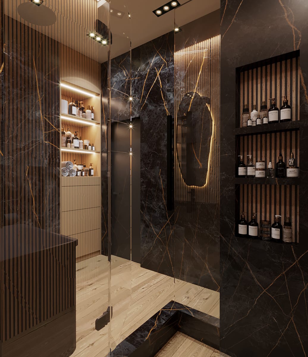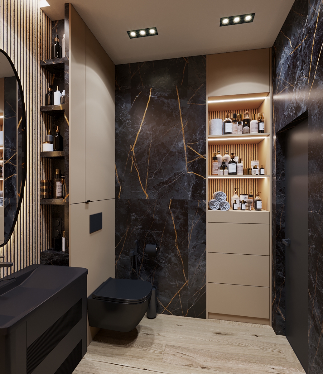 Дизайн всей квартиры имеет название "Ласточкино гнездо". Во-первых из-за её расположения на 24 этаже "свечки". Во-вторых из-за её визовых характеристик. Это тот случай, когда форму и цвет диктовало окружение.
