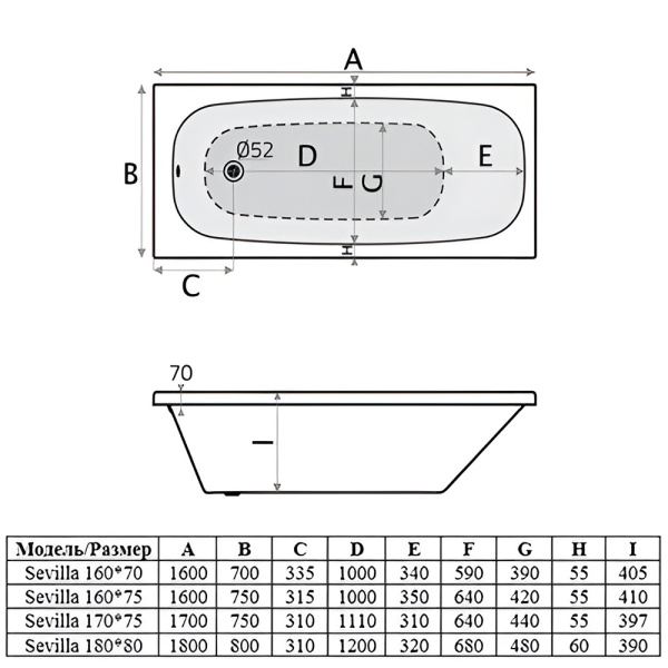 Формы и размеры ванн