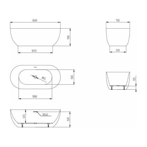 • Овальные и круглые — стильный выбор для современных и просторных ванных комнат.