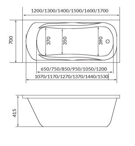 Акриловая ванна 1MarKa Elegance 170x70 белая, без каркаса