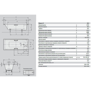 Сталь — прочный материал, который обеспечивает высокую устойчивость к механическим повреждениям и деформациям. Стальные ванны имеют долговечное эмалевое покрытие, которое защищает поверхность от царапин и сохраняет ванну в отличном состоянии на протяжении многих лет. - Легкость и удобство монтажа