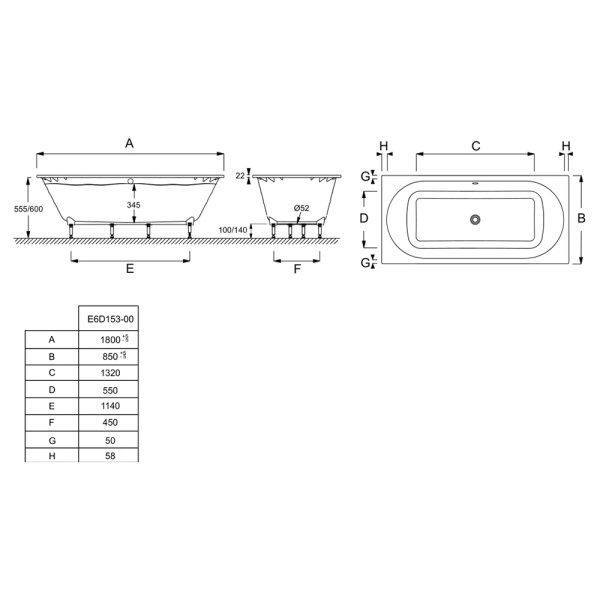 Ванна из искусственного камня Jacob Delafon Odeon Rive Gauche Flight 180x85 белая с ножками
