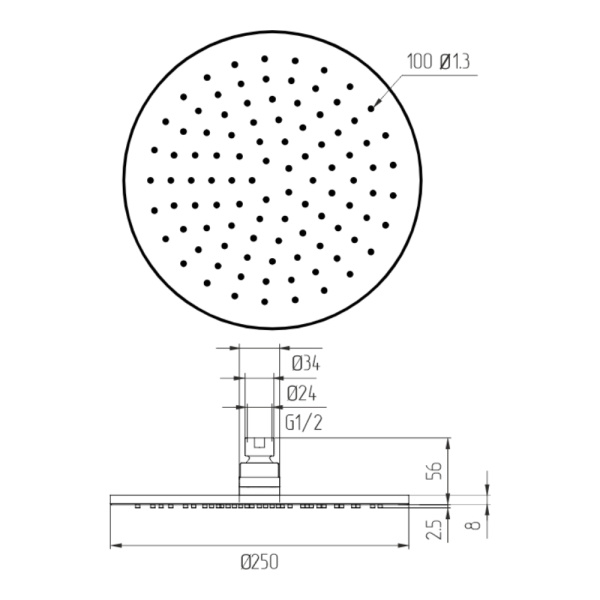 Верхние души могут иметь как круглую, так и квадратную форму. Круглый душ подходит для тех, кто предпочитает более традиционные и плавные линии, тогда как квадратный верхний душ чаще выбирают для современных интерьеров с четкими геометрическими формами. - С регулируемым углом наклона